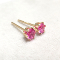【品名】 ピンクサファイア合成石「K10イエローゴールド」(10金)3mmラウンド6本爪・スタッドピアス(立て爪ピアス) 【材質】 K10イエローゴールド(10金) ・ピンクサファイア「火炎溶融法(ベルヌーイ法)」 /3mm ・ポストの太さ:約0.7mm ・刻印:10K