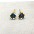 14k/3mmラウンド6本爪・スタッドピアス・天然石ロンドンブルートパーズ「14金イエローゴールド」(1ペア)
