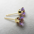 【品名】 5mmラウンド4本爪・スタッドピアス(立て爪ピアス)・天然石(アメジスト) 【材質】 14Kゴールドフィルド【14/20K】 ・天然石:アメジスト(5mm) ・ポストの太さ:約0.7mm ・刻印:14KGF