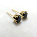 14kgf/4mmラウンド6本爪・スタッドピアス(立て爪ピアス)・天然石(ブラックスピネル)「ゴールドフィルド」(1ペア)