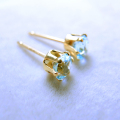 【品名】 4mmラウンド6本爪・スタッドピアス(立て爪ピアス)・天然石(ブルートパーズ)(1ペア) 【材質】 14Kゴールドフィルド【14/20K】 ・天然石:ブルートパーズ(4mm) ・ポストの太さ:約0.7mm ・刻印:14KGF