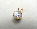 【品名】 6本爪ペンダントトップ(立爪A)(キュービックジルコニア・ラウンド6mm)「14kgf(ゴールドフィルド)」 【材質】 14Kゴールドフィルド【14/20K】 ・キュービックジルコニア:6mm ・刻印:1/20 14K