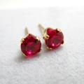 【品名】 ルビー合成石「ゴールドフィルド(14kgf)」5mmラウンド4本爪・スタッドピアス(立て爪ピアス) 【材質】 14Kゴールドフィルド【14/20K】 ・ルビー「合成コランダム/火炎溶融法(ベルヌーイ法)」 /5mm ・ポストの太さ:約0.7mm ・刻印:14KGF