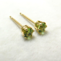 14kgf/3mmラウンド6本爪・スタッドピアス(立て爪ピアス)・天然石(グリーントルマリン)「ゴールドフィルド」(1ペア)です。