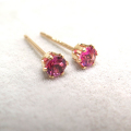 14kgf/3mmラウンド6本爪・スタッドピアス・天然石ピンクトルマリン(アフリカ)「ゴールドフィルド」(1ペア)