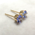 14kgf/4mmラウンド6本爪・スタッドピアス(立て爪ピアス)・天然石(タンザナイト)「ゴールドフィルド」(1ペア)です。