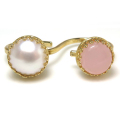 淡水パール(真珠)12mm+天然石ピンクカルセドニー10mm(ベゼルラウンド)(真鍮ブラス・ゴールドカラー)(1個) です。