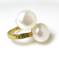 淡水パール(真珠)指輪リング/ハンマード(ボタン11mm×2)(真鍮ブラス・ゴールドカラー)(10個)です。