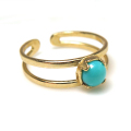 天然石ターコイズ(アリゾナ・スタビライズド)・指輪リング(カボションラウンド・5mm)(真鍮ブラス・ゴールドカラー)(1個) です。