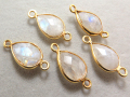 ゴールドプレーテッド・SV925/コネクター/天然石レインボームーンストーン/ペア 10×7mm(ベゼルセッティング)(3個)