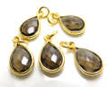 ゴールドプレーテッド・SV925/ペンダントトップ/天然石スモーキークオーツ/ペア 10×7mm(ベゼルセッティング)(3個)