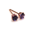 天然石アメジスト(アフリカ)3mmラウンド6本爪スタッドピアス・ローズゴールドフィルド「14kgf」(1ペア)です。