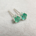 sv925シルバースタッドピアス(3mmラウンド6本爪)天然石エメラルド・ザンビア産/無処理(10ペア)