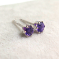 天然石アメジスト(アフリカ)・6本爪ポストピアス(ラウンド3mm)「14kgf(ホワイトゴールドフィルド)(ロジウム)」(5ペア)