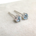 天然石ブルートパーズ(スカイブルー)・6本爪ポストピアス(ラウンド3mm)「14kgf(ホワイトゴールドフィルド)(ロジウム)」(10ペア)です。