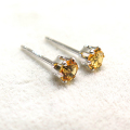 天然石シトリン・6本爪ポストピアス(ラウンド3mm)「14kgf(ホワイトゴールドフィルド)(ロジウム)」(10ペア)