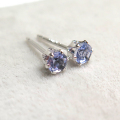 天然石アイオライト・6本爪ポストピアス(ラウンド3mm)「14kgf(ホワイトゴールドフィルド)(ロジウム)」(25ペア)