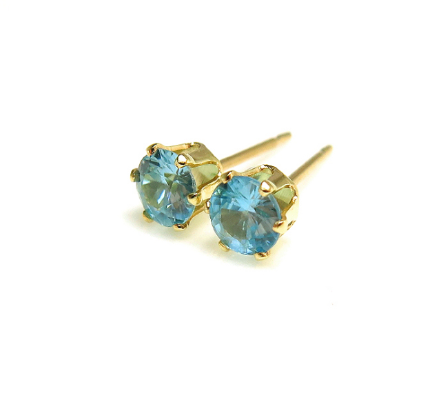 K10/4mmラウンド6本爪・スタッドピアス・天然石(ブルージルコン)「10K(10金)イエローゴールド」(1ペア)