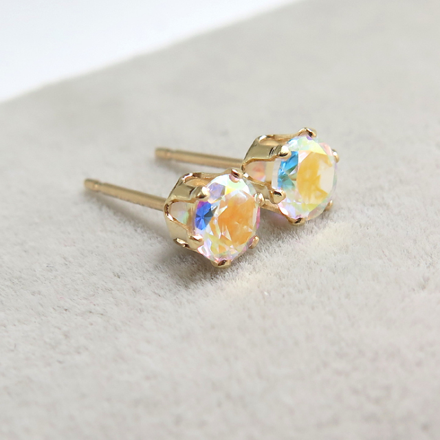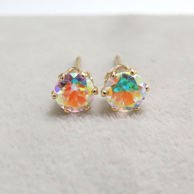 10K/4mmラウンド6本爪・スタッドピアス・天然石ミスティックトパーズ(レインボー)ブラジル産「10金イエローゴールド」(1ペア)