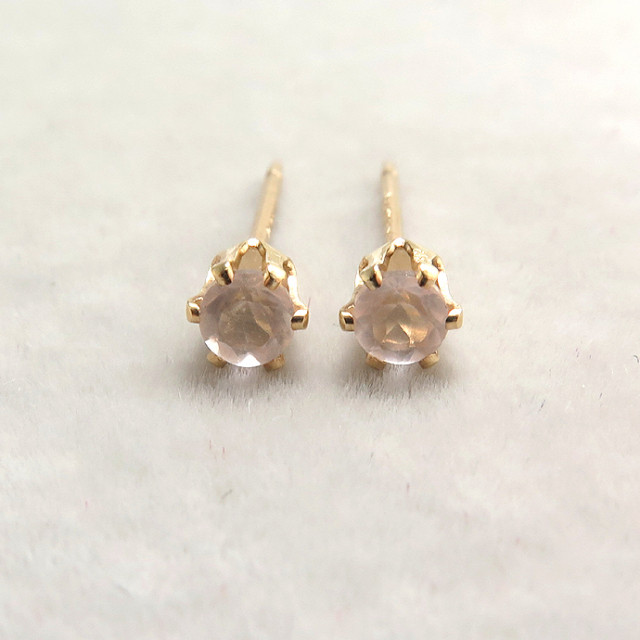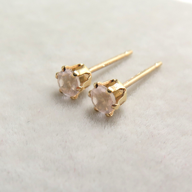 14k/3mmラウンド6本爪・スタッドピアス(立て爪ピアス)・天然石(ローズクオーツ)「14金イエローゴールド」(1ペア)