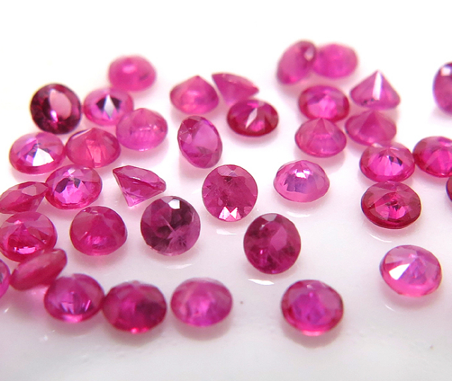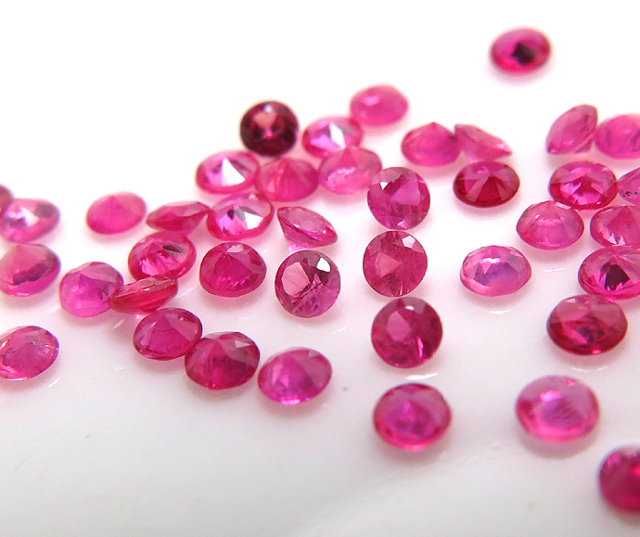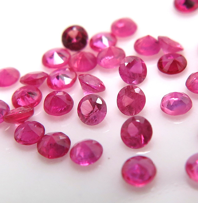 天然石ルース(裸石)・ルビー(加熱処理)レディッシュピンク(アフリカ産)/ラウンド【2mm】ファセットカット(50個)