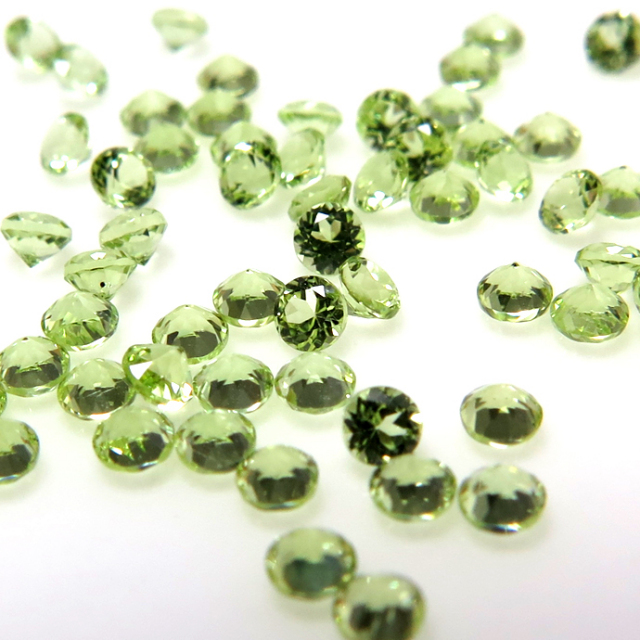 天然石ルース(裸石)・ペリドット/ラウンド【2mm】ファセットカット(500個)
