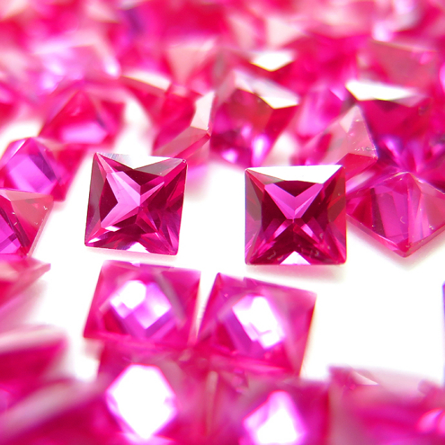 ルビー【AAA】「合成コランダム/火炎溶融法(ベルヌーイ法)」・ルース(裸石)/スクエア【6mm】ファセットカット(25個)