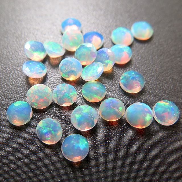 天然石ルース(裸石)・エチオピアンオパール(エチオピア・ウェロ州産)/ラウンド【2mm】ファセットカット(8個)