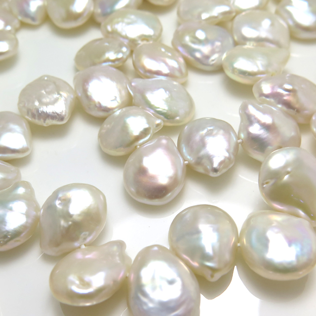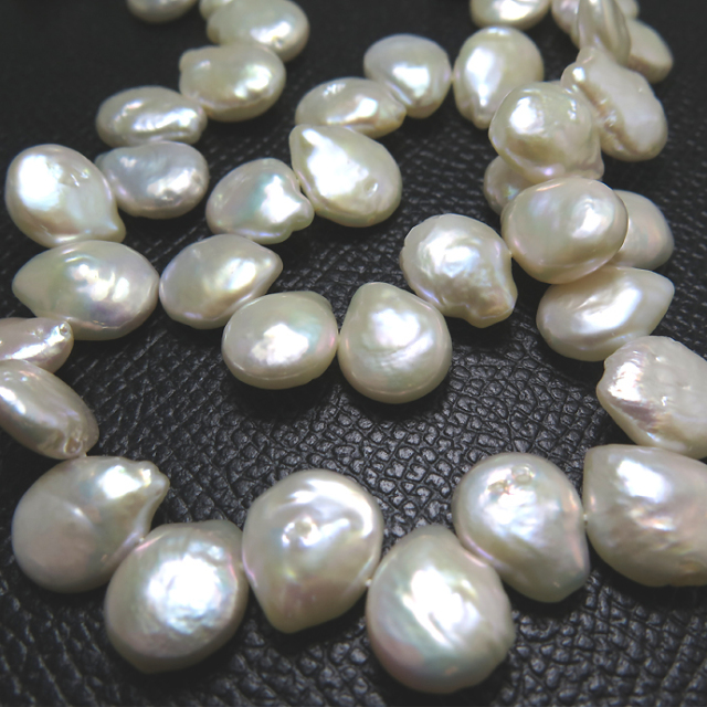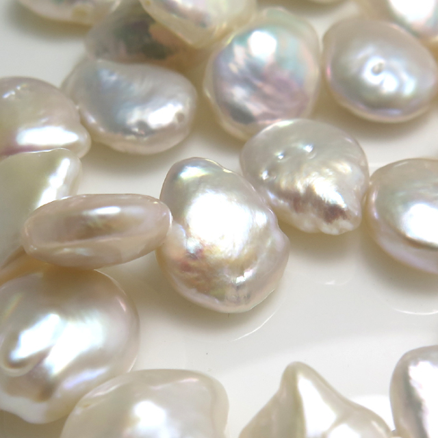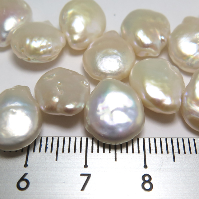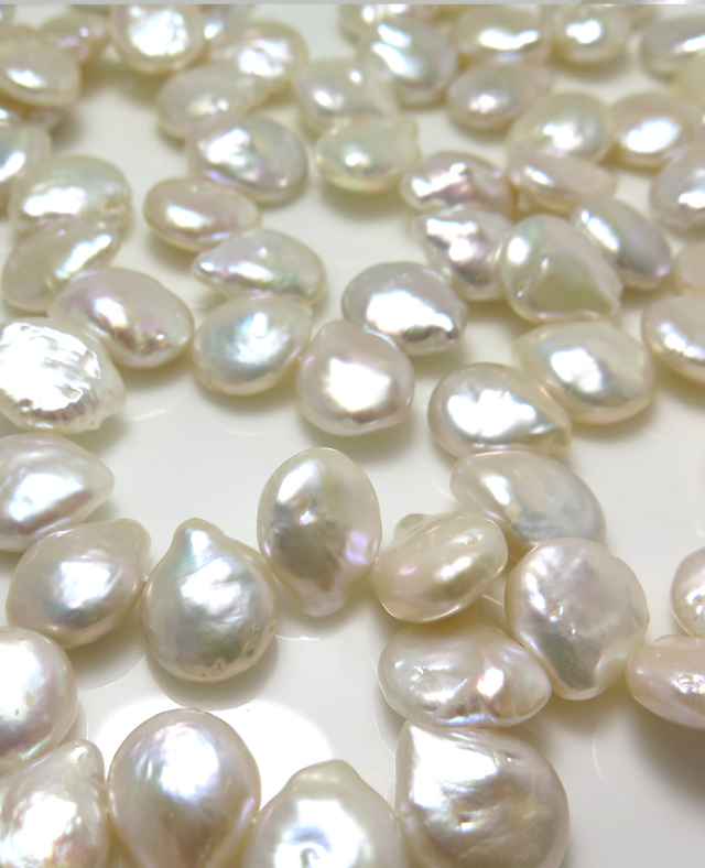 淡水パール真珠(ホワイト系)ケシパール(花びら)(横穴)12~16mm×10~13mm×3~7mm(10連)