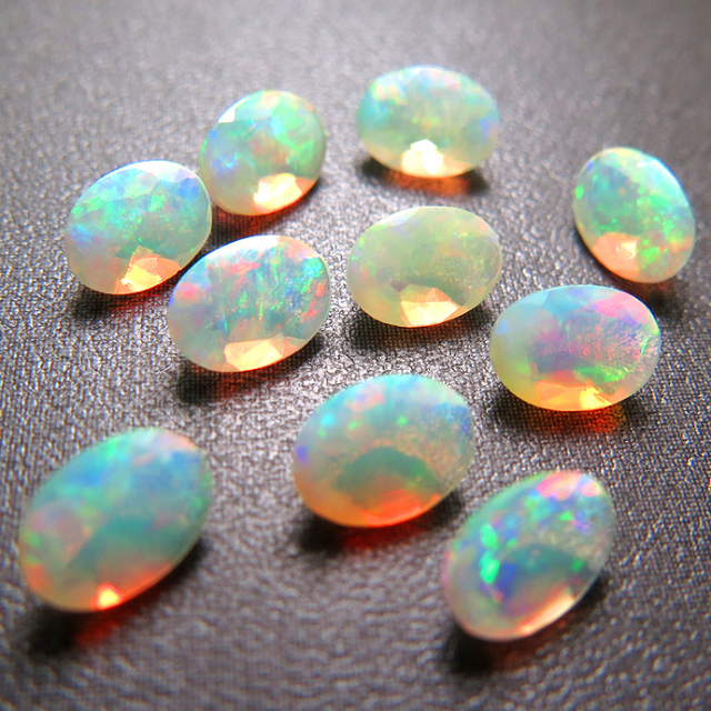 天然石ルース(裸石)・エチオピアンオパール(エチオピア・ウェロ州産)/オーバル【6×4mm】ファセットカット(25個)