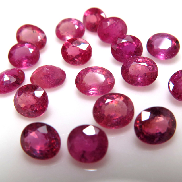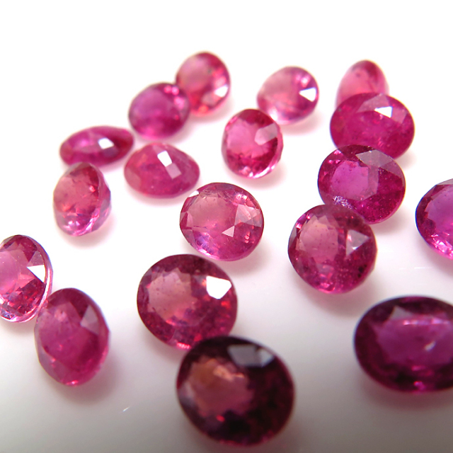 天然石ルース(裸石)・ルビー(加熱/鉛ガラス充填・モザンビーク)/オーバル【6×5mm】ファセットカット(5個)