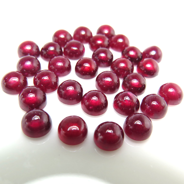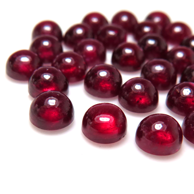 ルビー 天然石ルース 裸石 鉛ガラス充填 ラウンド 6mm カボションカット(5個)