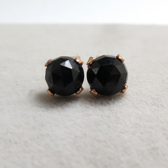 カボションピアス(ローズカット・天然石ブラックオニキス 5mm)「ゴールドフィルド(14kgf)」(1ペア)