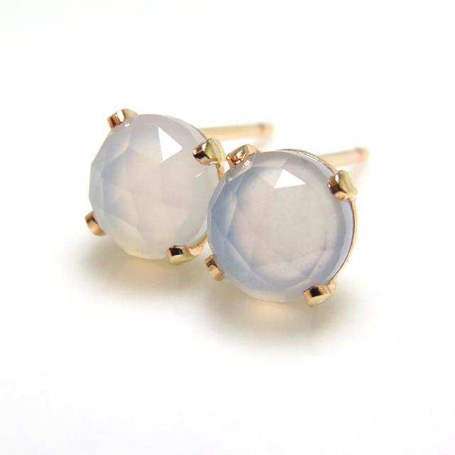 14kgfピアス 天然石カルセドニー 6mmカボション ローズカット(ラウンド)「ゴールドフィルド」(1ペア)