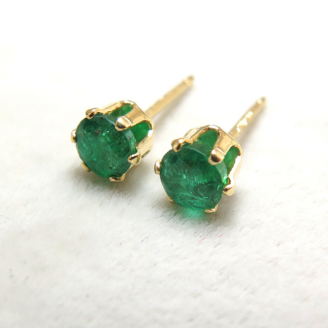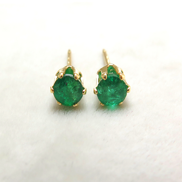 14kgf/4mmラウンド6本爪・スタッドピアス(立て爪ピアス)・天然石(エメラルド・ザンビア産)「ゴールドフィルド」(1ペア)