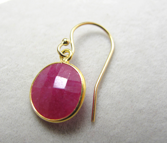 フレンチフックピアス(ボールエンド)天然石ルビー(染)11mm「14kgf(ゴールドフィルド)」(1ペア/2個)