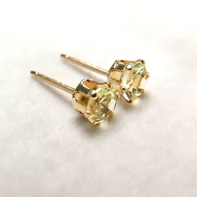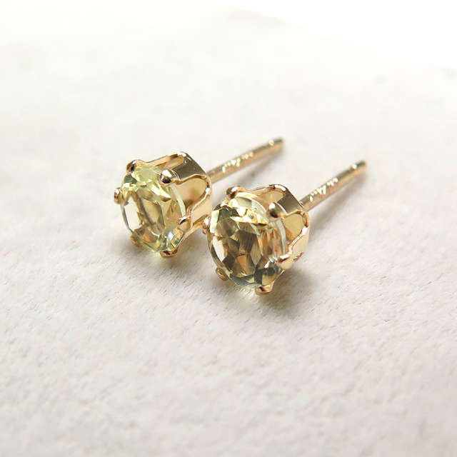 14kgf/4mmラウンド6本爪・スタッドピアス(立て爪ピアス)・天然石(レモンクオーツ)「ゴールドフィルド」(1ペア)