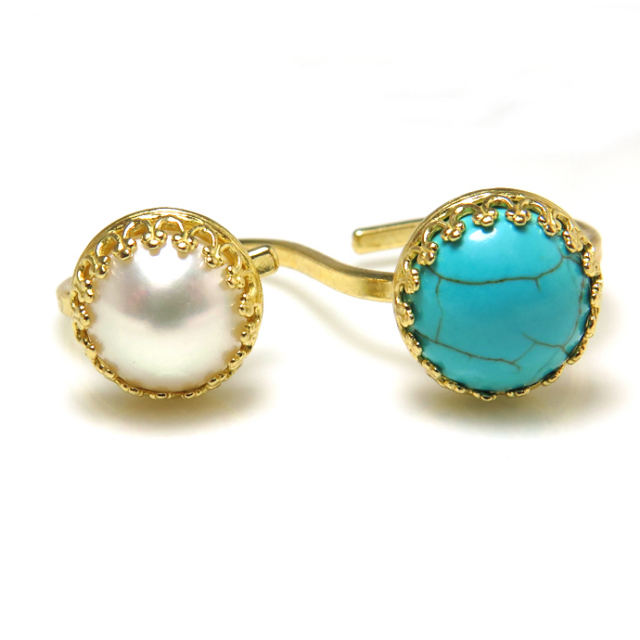 淡水パール(真珠)10mm+天然石ハウライト ターコイズ12mm(ベゼルラウンド)(真鍮ブラス・ゴールドカラー)(1個)