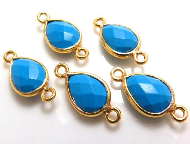 ゴールドプレーテッド・SV925/コネクター/ターコイズ(トルコ石)/ペア 10×7mm(ベゼルセッティング)(1個)
