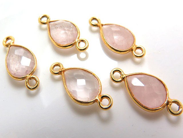 ゴールドプレーテッド・SV925/コネクター/天然石ローズクオーツ/ペア 10×7mm(ベゼルセッティング)(3個)