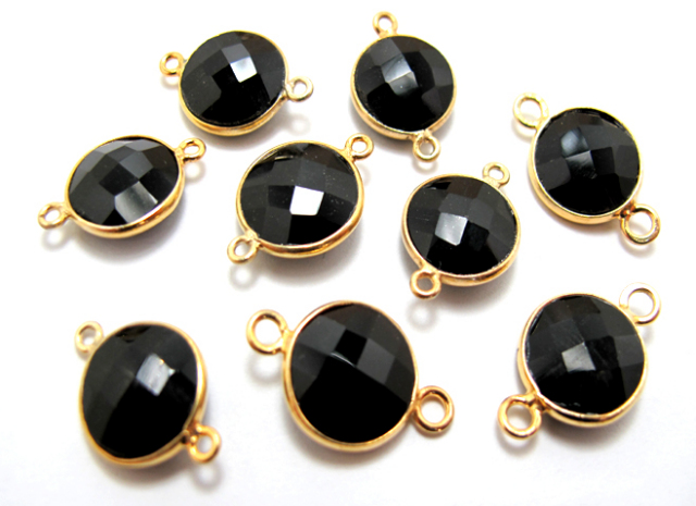 ゴールドプレーテッド・SV925/【コネクター】/天然石ブラックオニキス/ラウンド 11mm(ベゼルセッティング)(10個)
