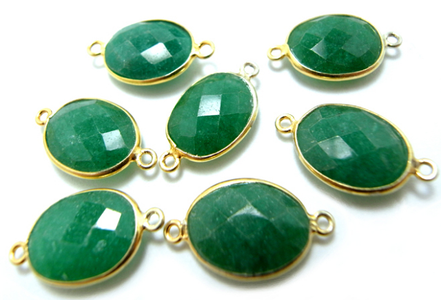 ゴールドプレーテッド・SV925/【コネクター】/天然石エメラルド(染)/オーバル 11×15mm(ベゼルセッティング)(1個)