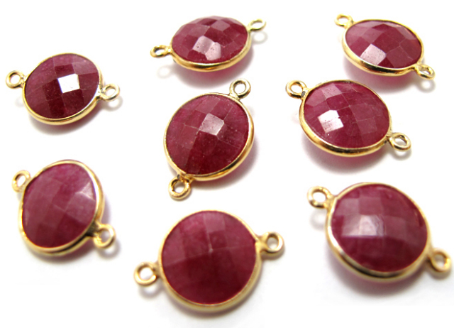 ゴールドプレーテッド・SV925/【コネクター】/天然石ルビー(染)/ラウンド 11mm(ベゼルセッティング)(1個)