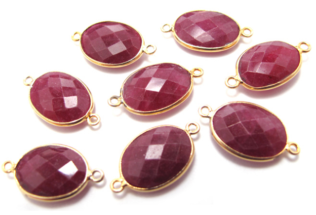 ゴールドプレーテッド・SV925/【コネクター】/天然石ルビー(染)/オーバル 11×15mm(ベゼルセッティング)(5個)