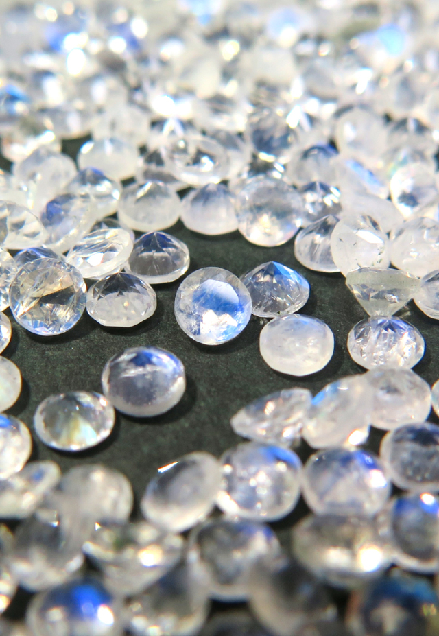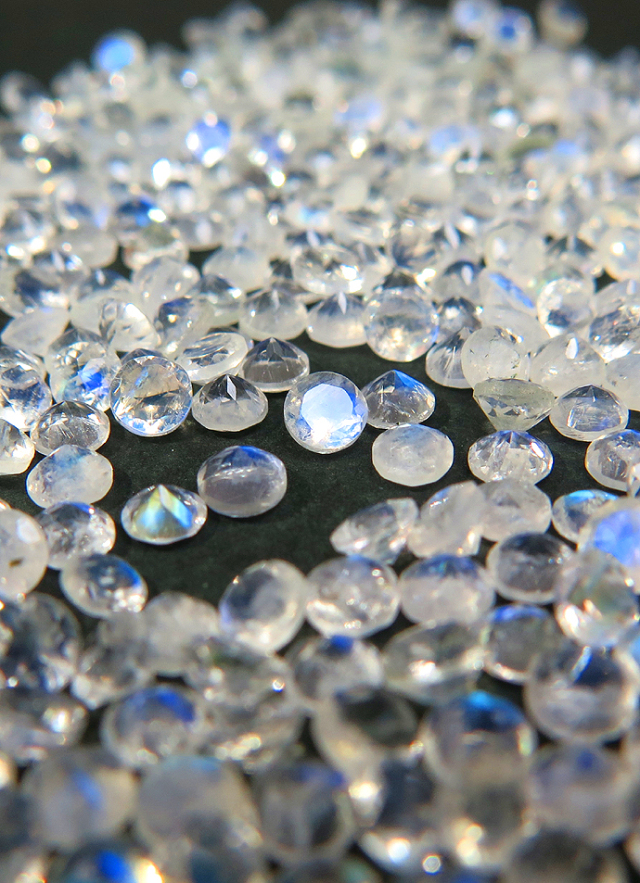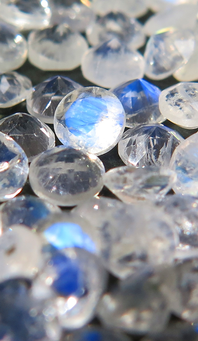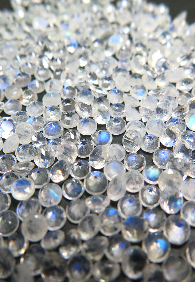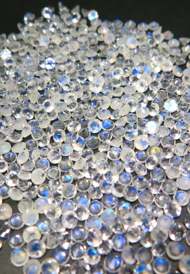 レインボームーンストーン 天然石ルース/ラウンド・ファセットカット【3mm】(25個)