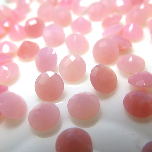 天然石ルース(裸石) ピンクオパール/ラウンド チェッカーカット【6mm】(5個)