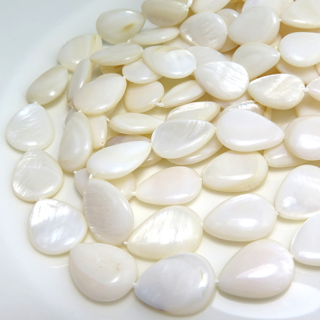 シェルビーズ 貝 ドロップ(ホワイト系)(18mm×13mm)(10本)
