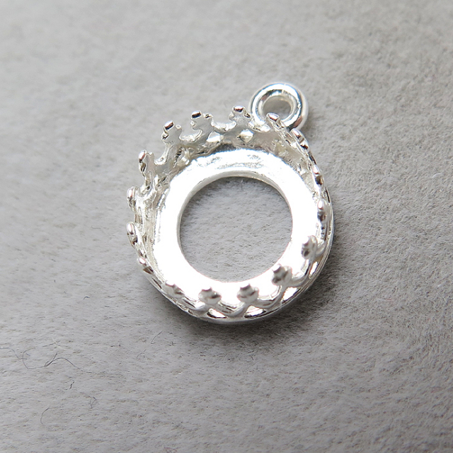ペンダント空枠クラウン(ベゼルセッティング/カボション用)(ラウンド・8mm)(真鍮ブラス・シルバープレーテッド)(50個)