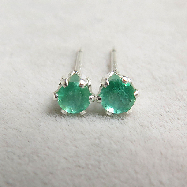 sv925シルバースタッドピアス(3mmラウンド6本爪)天然石エメラルド・ザンビア産/無処理(10ペア)