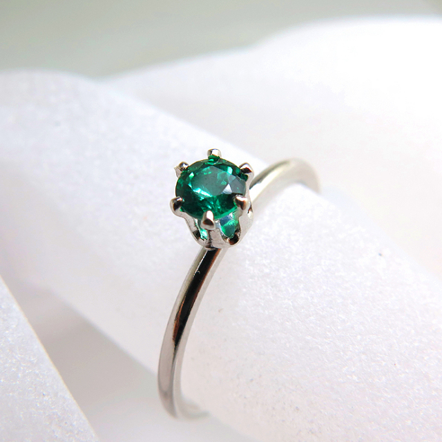 シルバーリング(指輪)合成石エメラルド(AAA)4mm(ラウンド)「SV925」(ロジウム仕上げ)(サイズ目安:10号)(5個)